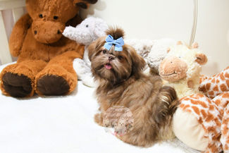 Mila, Lila, and Ella are THE CUTEST, sweetest, ittiest, bittiest, baby girls! These precious Imperial Shih-Tzu girls are perfect in every way possible! Lila seems to be the alpha of the 3, Mila is a little shy, and Ella just wants to be right by my side 24/7!
